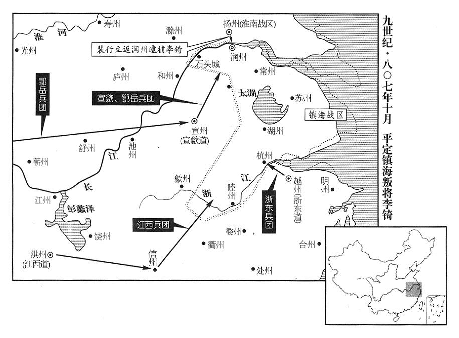 5、淮南战区(总部设扬州“〔江苏省扬州市〕”)司令官杜佑不断上疏请求中央派人接替。