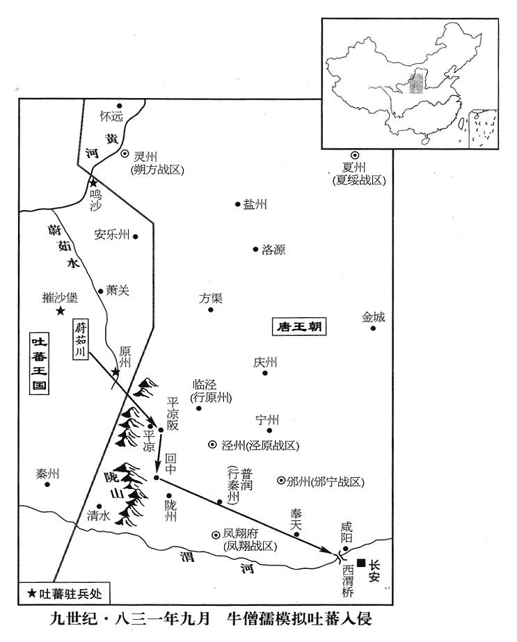 5、夏季,五月十二日,西川战区(总部设成都府“〔四川省成都市〕”)司令官李德裕奏报说:整修邛崃关(四川省汉源县北),并把巂州(四川省西昌市·已沦陷)州政府移到台登城(四川省冕宁县南泸沽镇)。