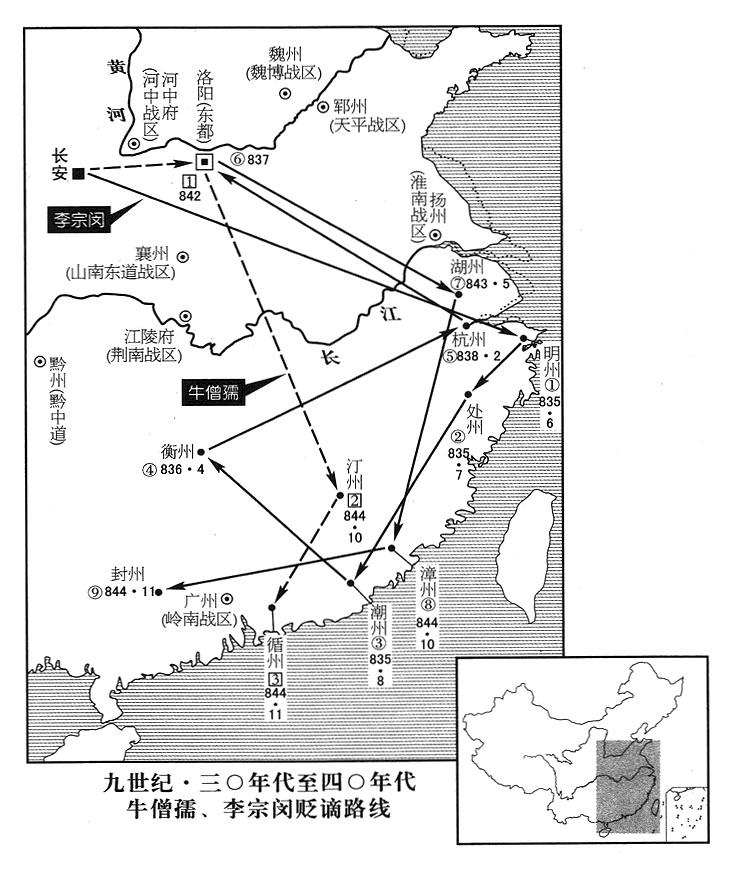 28、十一月,再贬牛僧孺当循州(广东省惠州市)政务秘书长,李宗闵终身流放封州(广东省封开县)。