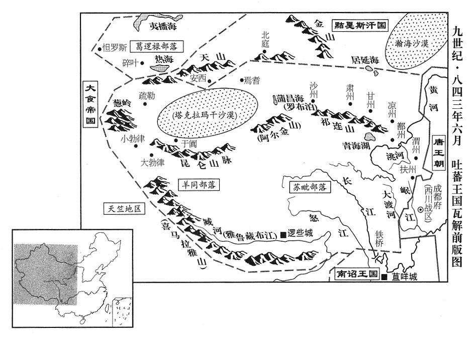 4、河东战区(总部设大原府“〔山西省太原市〕”)司令官苻澈,整修杷头烽(山西省朔州市西北)营垒废墟,预防回鹘汗国溃散后各部落南下流窜。宰相李德裕奏请增兵镇守,并进一步整修更北的东受降城(内蒙古托克托南)及中受降城(内蒙古包头市),加强保卫天德军的实力。李瀍批准。