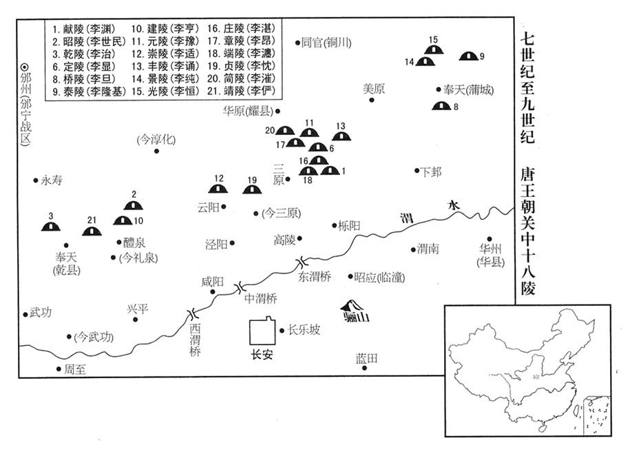 4、二月一日,李漼祭拜十六陵。(献陵“〔一任帝李渊墓·陕西省富平县南〕”、昭陵“〔二任帝李世民墓·陕西省礼泉县东北九嵕山〕”、乾陵“〔三任帝李治墓·陕西省乾县西北〕”、定陵“〔六任帝李显墓·陕西省富平县西北龙泉山〕”、桥陵“〔八任帝李旦墓·陕西省蒲城县西北〕”、泰陵“〔九任帝李隆基墓·陕西省蒲城县东北金粟山〕”、建陵“〔十任帝李亨墓·陕西省礼泉县北武将山〕”、元陵“〔十一任帝李豫墓·陕西省富平县西北檀山〕”、崇陵“〔十二任帝李适墓·陕西省泾阳县北〕”、丰陵“〔十三任帝李诵墓·陕西省富平县东北瓮金山〕”、景陵“〔十四任帝李纯墓·陕西省蒲城县西北金炽山〕”、光陵“〔十五任帝李恒墓·陕西省蒲城县北尧山〕”、庄陵“〔十六任帝李湛墓。陕西省富平县西〕”、章陵“〔十七任帝李昂墓·陕西省富平县西北天乳山〕”、端陵“〔十八任帝李瀍墓·陕西省富平县西南〕”、贞陵“〔十九任帝李忱墓·陕西省三原县西北〕”。)